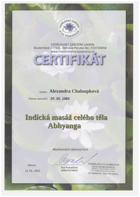 Vzdělání a certifikace, které nám umožňují pečovat o vaše tělo i duši s důvěrou